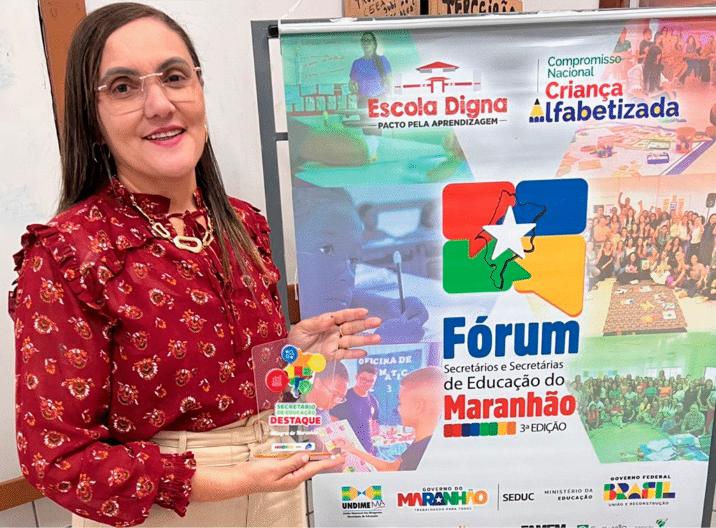 Este sucesso culminou na premiação da nossa gestora, a Secretária Municipal de Educação, Aline Caldas, com o Prêmio de Destaque pela Educação. Este marco celebra o esforço coletivo!